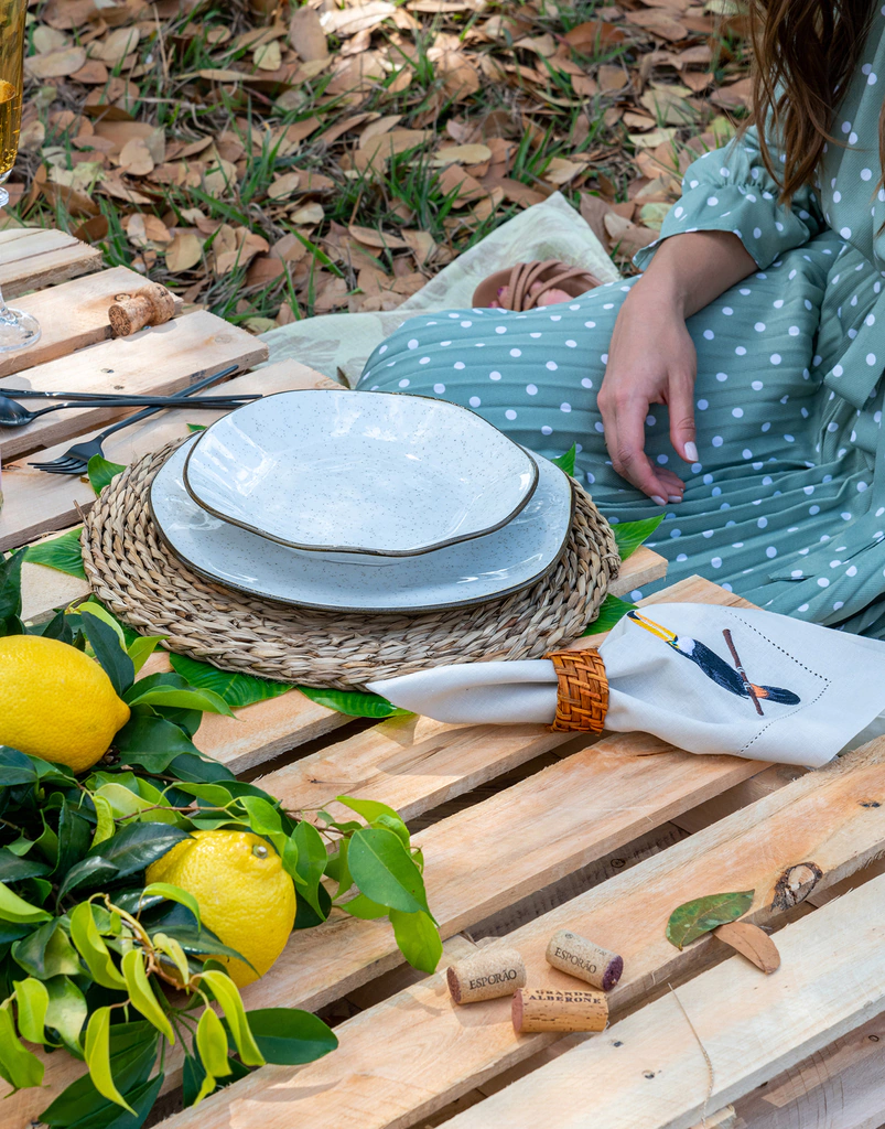 Inspirada na beleza serena e imperfeita do litoral, a linha Maresia utiliza o conceito *wabi-sabi* para criar louças autênticas. O formato fundo e as bordas suaves e irregulares são perfeitos para o estilo contemporâneo que valoriza o natural e o artesanal na decoração.