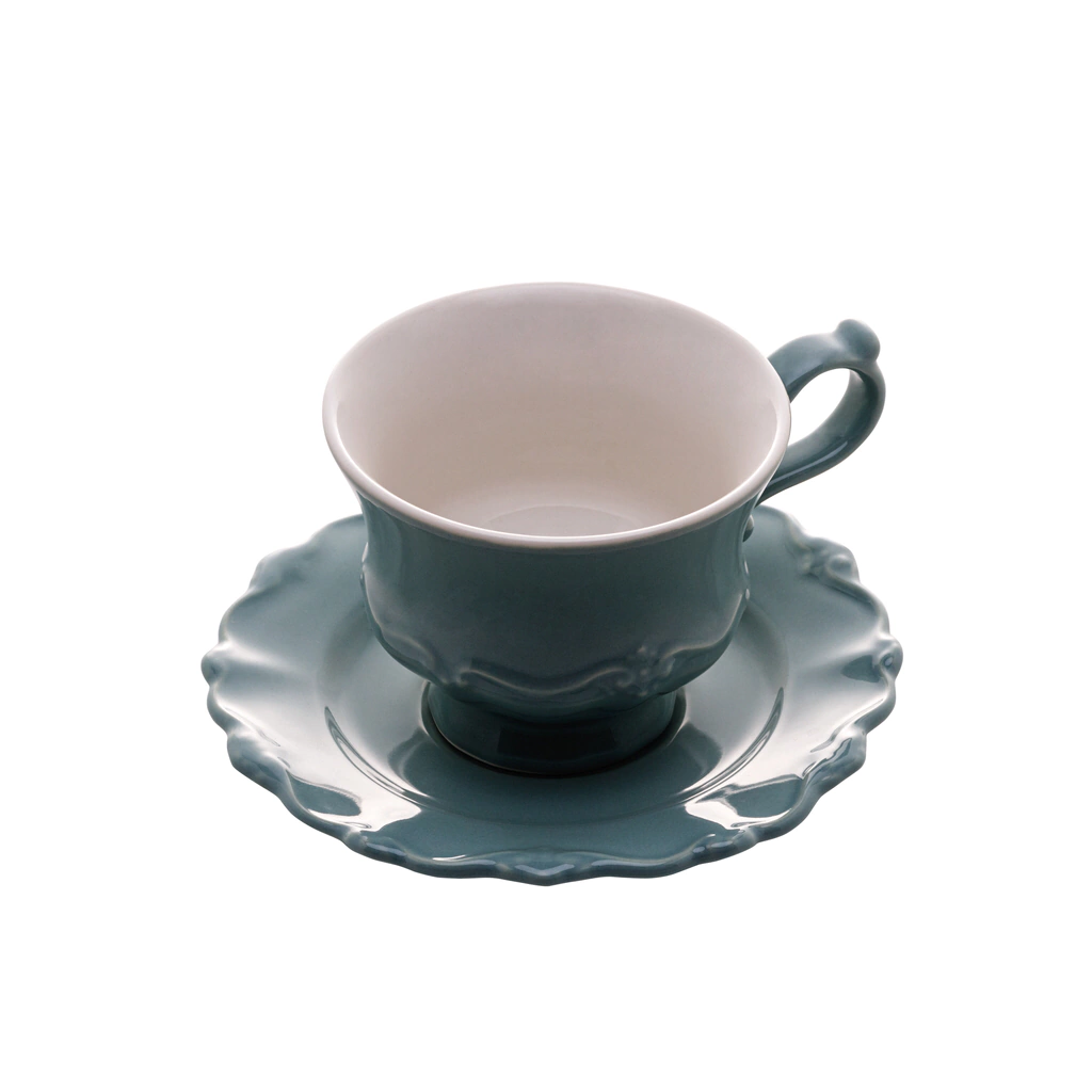 Conjunto de 6 xícaras de café c/ pires em porcelana Fancy Menta. 90ml.