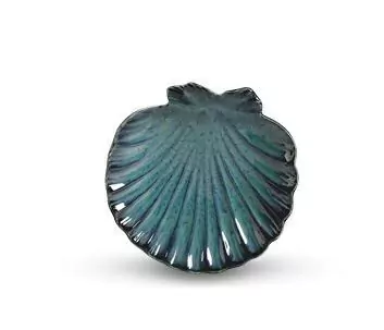 Conjunto de 2 pratos de sobremesa linha Shell, em cerâmica azul reactive. Diâmetro 23cm.