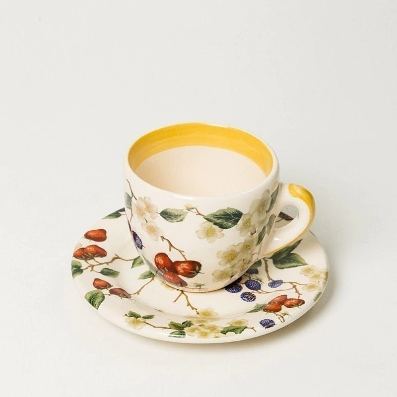 As xícaras com pires da linha Fresh Garden são ideais para servir com um toque de cor e arte. Elas adicionam personalidade à sua mesa posta, sendo perfeitas para o café da manhã, *brunch* ou para um chá da tarde sofisticado. Combine o conjunto com travessas e potes da mesma linha para criar um ambiente temático e alegre, mas sempre com a curadoria elegante da Oak Home Decor.