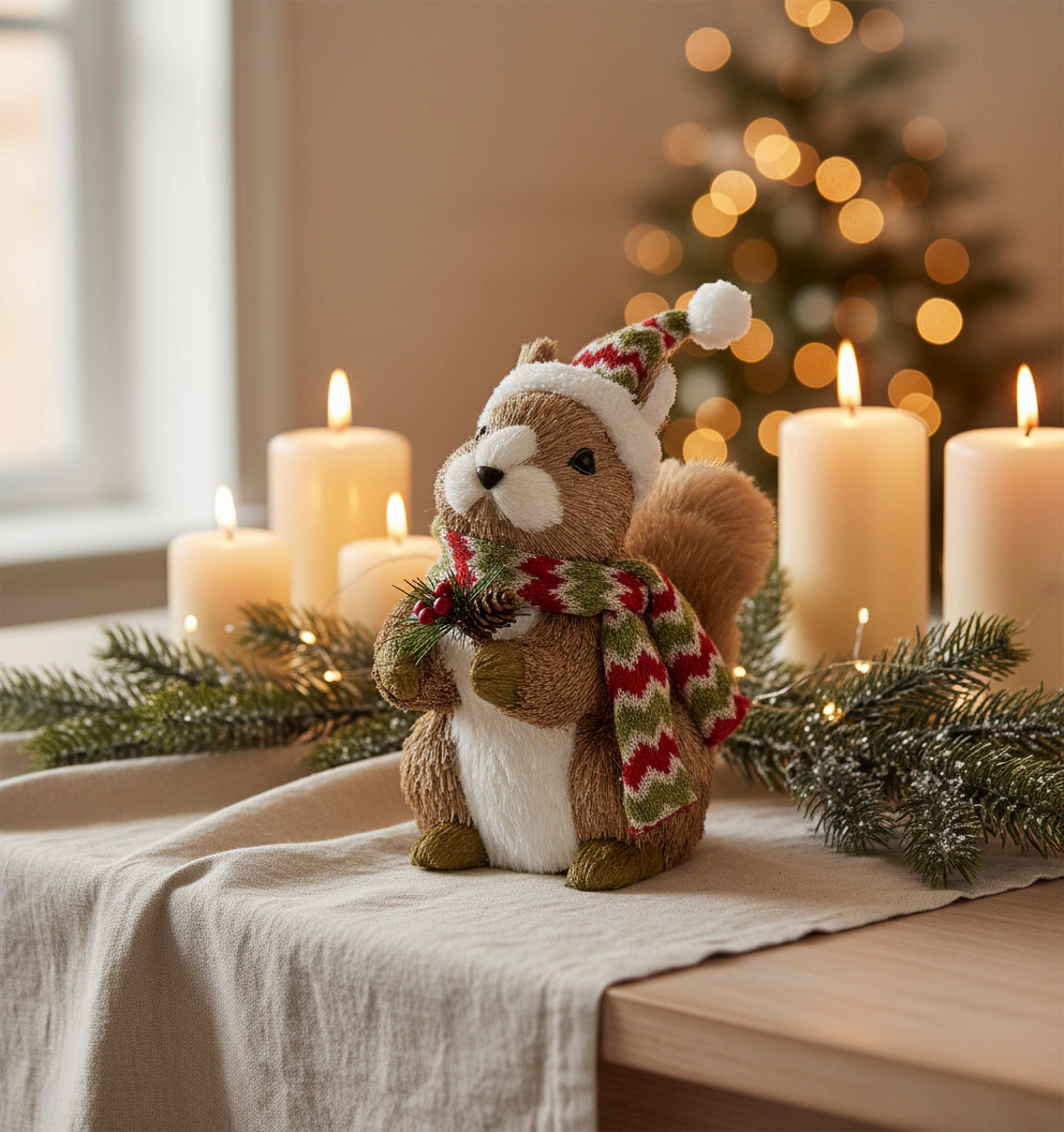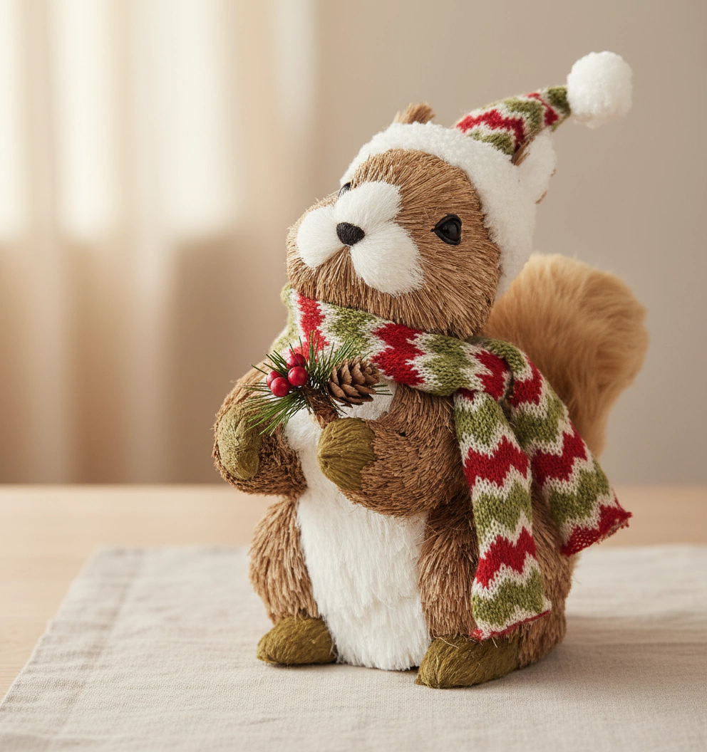 Encante-se com o toque artesanal e festivo do Esquilo Decorativo em Palha Natural com Cachecol e adicione uma dose de aconchego e alegria à sua decoração de fim de ano.