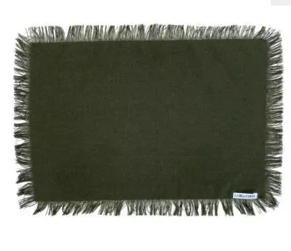 Lugar Americano em Linho modelo Franja cor oliva. Medidas: 35x50cm.